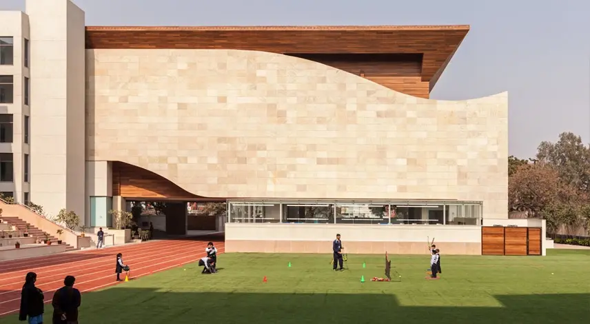 The proposed building includes School building with all required labs, a swimming Pool, multipurpose hall, eight lane 100m running